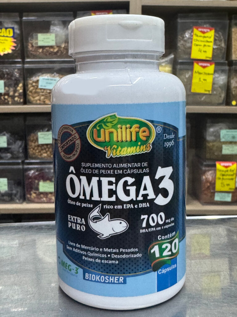 Ômega 3 Unilife 700mg selo MEG-3 (biokosher). 120 cápsulas