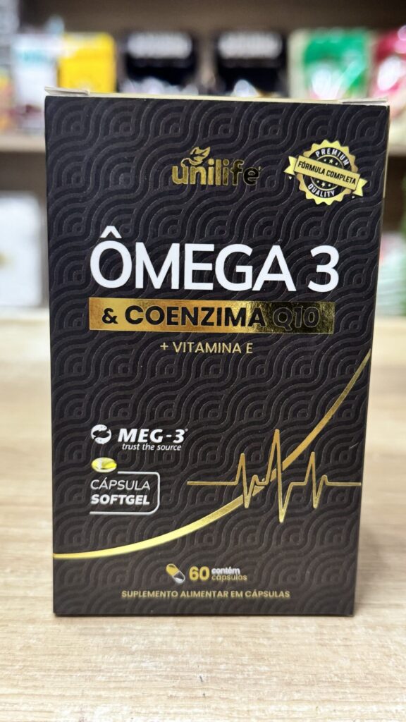 - Suporte à saúde cardiovascular através da combinação de ômega 3 e coenzima Q10.