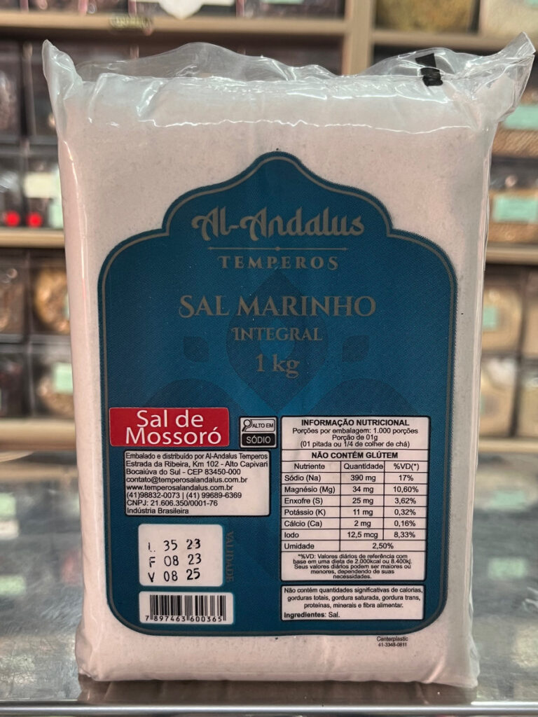 O Sal Marinho de Mossoró Integral Com Iodo Al Andalus é o verdadeiro sal marinho no qual você sente a diferença na textura, sabor e riqueza de nutrientes que não são perdidas em comparação aos sais de mesa comuns que são refinados.