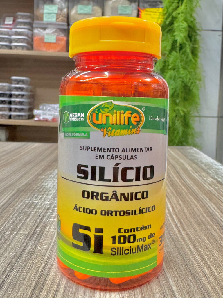 O Silício Orgânico da Unilife contém ácido ortosilícico estabilizado em maltodextrina, uma forma biodisponível de silício, essencial para pele, cabelo, unhas e ossos.