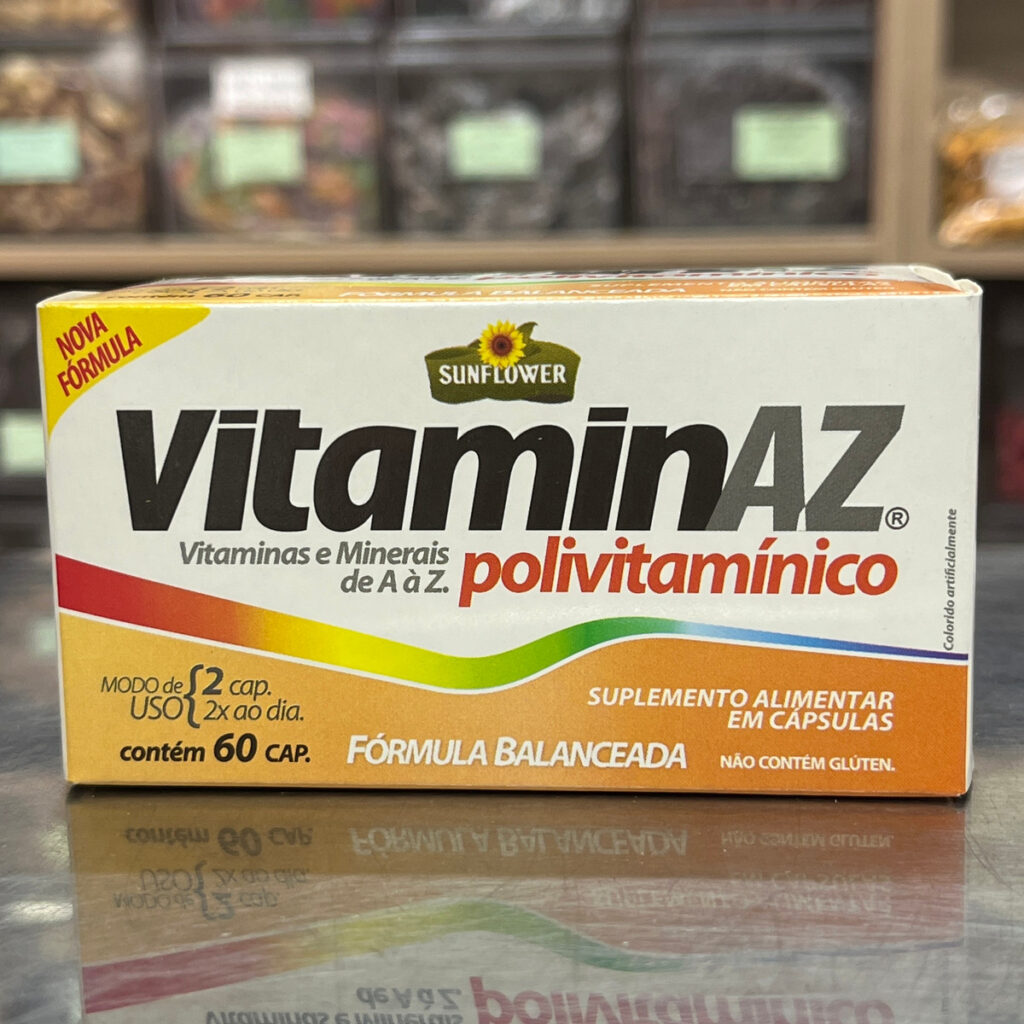 VITAMINAZ POLIVITAMÍNICO é um suplemento vitamínico completo de A a Z que traz em sua composição diversas vitaminas e minerais essenciais para organismo.